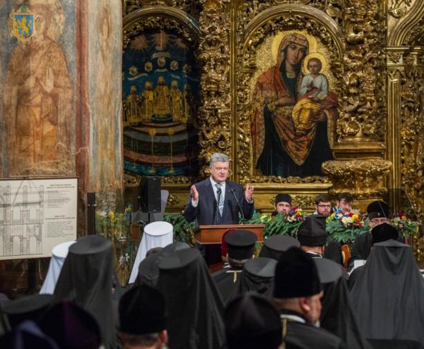 «Протягом кількох десятків років ми не просто молилися, а будували церковні структури, які тепер стають основою незалежної і визнаної української церкви», - сказав Петро Порошенко. Він подякував Президенту України Віктору Ющенку (2005-2010 років), який також присутній на Соборі, за його інтенсивний діалог з Церквою-Матір’ю.