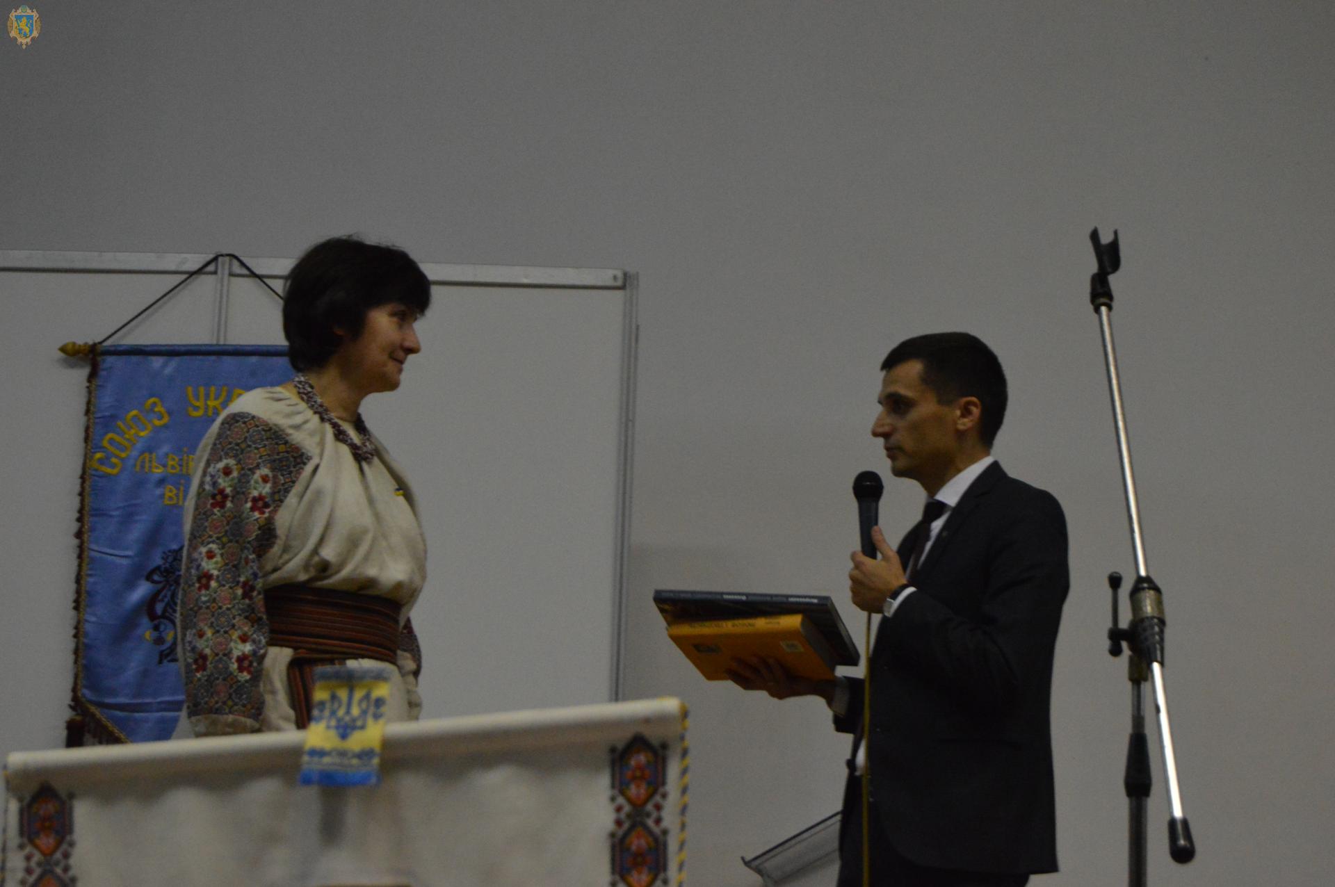 Також заступник голови Львівської ОДА у подарунок вручив книги голові Львівського відділу Союзу Українок Ользі Пастушенко.